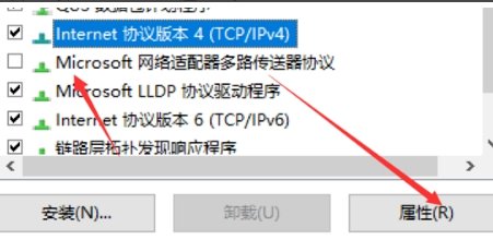 2、再点击网络选项卡,选择Internet协议版本4(TCP/IPv4),点击属性。