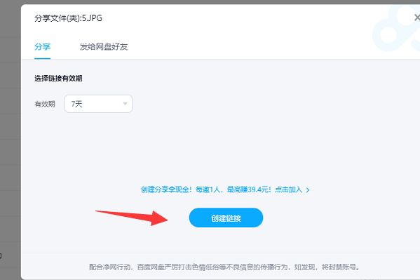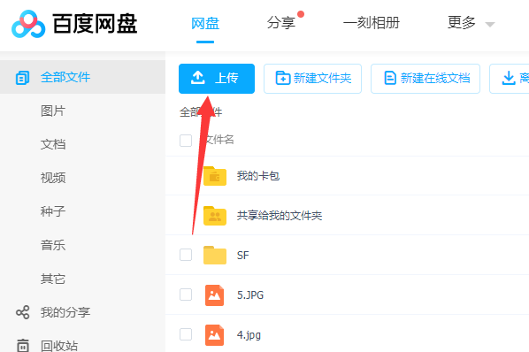 可以通过百度网盘的功能将图片设置为链接进行分享。打开并登录进入到百度网盘,点击上传文件,将该图片上传以后再点击分享按钮即可看到其对应的链接了。具体的操作方法如下: