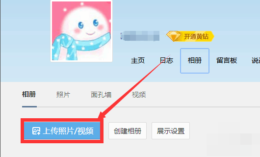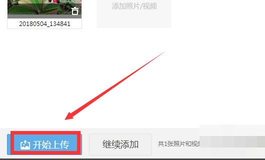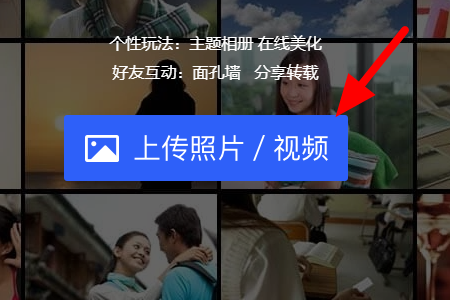 2、然后在弹出来的窗口中点击打开相册中的“上传照片/视频”。