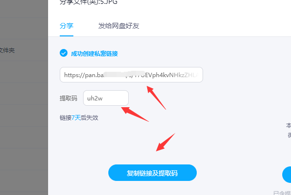 7、最后在分享窗口里,点击复制链接,就可以直接创建图片网上链接了。