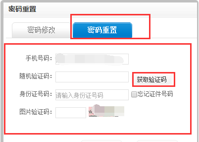 4、最后,进入更改服务密码的新页面,根据提示输入手机号码,获取验证码并输入身份证号码,点击确定进入重置操作,如下图所示。