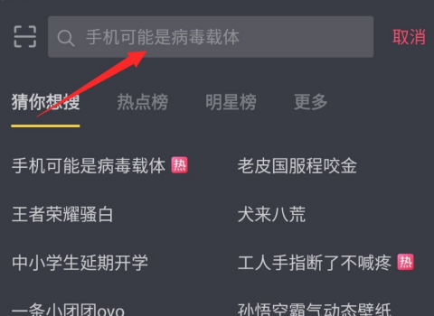 2、点击后, 这样就打开了抖音的搜索页面,在顶部有一个用来输入搜索内容的输入框,点击一下。