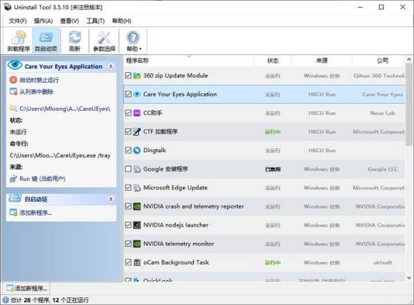 除了卸载功能之外,它还有禁止开机启动项的的功能,关闭你不需要自启动的软件,能提高电脑的运行速度。