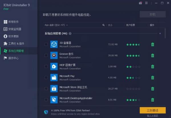 iobit uninstaller是一款体积小巧、运行速度快的软件强力卸载工具。它的使用类似于Windows的添加/删除程序,并能够有效的取代Windows自带的卸载功能。