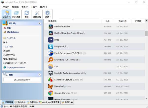 一款比较受欢迎的卸载软件,软件体积轻巧,该有的功能它都有,可以扫描到你电脑中所有安装的软件,包括那些隐藏起来的流氓软件,使用它都可以强行卸载。