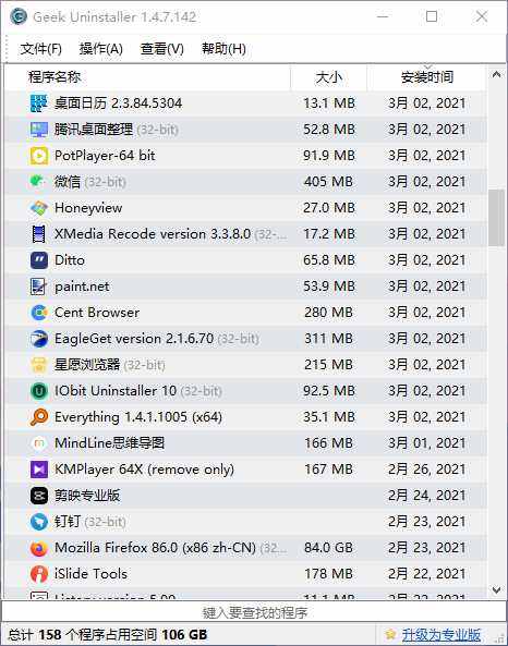 页面设计也非常简单,打开之后就可以看到电脑上安装的所有软件,还能看到软件的大小和安装时间。