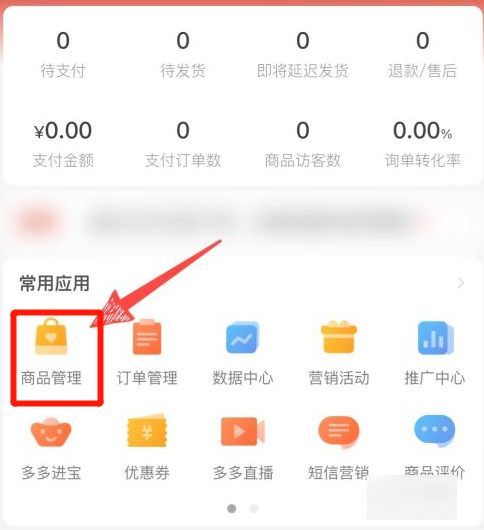 1、打开拼多多商家版APP,在页面里选择商品管理选项。