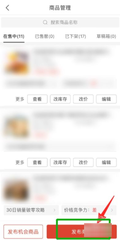 2、接着在商品管理的内容里,选择点击下方的发布商品。