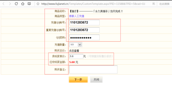 4、之后我们填写好要充值的账号信息和购价支付就完成了购买,之后等待供货商充值。