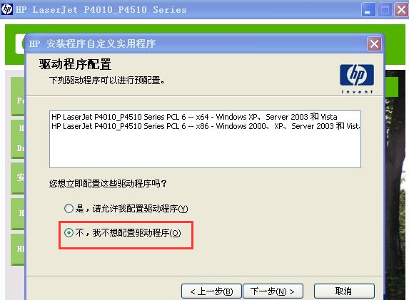 6、驱动程序配置选择“否”,点击“下一步”直到驱程序安装完成。