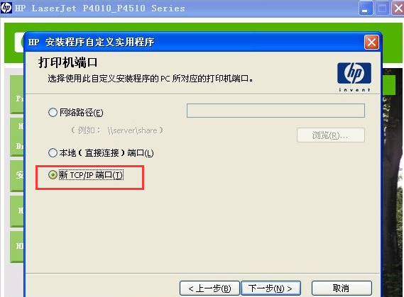 2、在打印机端口选项中选择“新TCP/IP端口”,并在IP地址栏中输入打印机IP。
