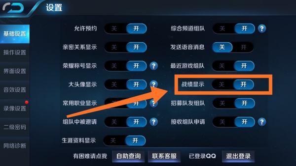 5)点击关闭【战绩显示】即可关闭王者荣耀对战记录,关闭对战记录之后,除自己以外别无法查看,如图所示。
