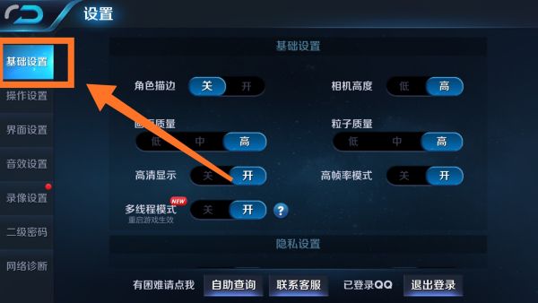 接下来,我们点击基础设置选项,下拉找到隐私设置,在隐私设置里面有这么一个选项卡,战绩显示,然后呢,我们点击关闭,此时,我们的战绩就会被隐藏了。