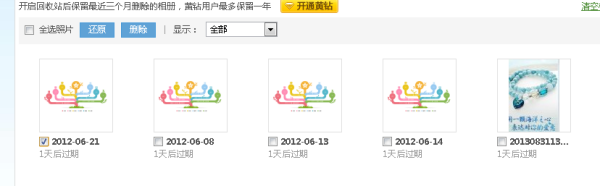 注:如果没有开通空间回收站则无法找回图片,找回的图片为最近三个月内删除丢失 的图片。