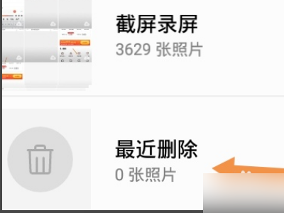 3、接着在打开的相册页面中,找到并点击最近删除选项,如下图所示。