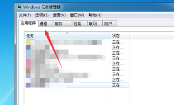 3.在打开的任务管理器中,单击上面的“进程”选项如下图。