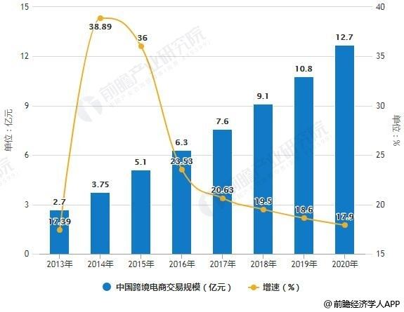 2013-2020年中国跨境电商交易规模统计及增长情况预测
