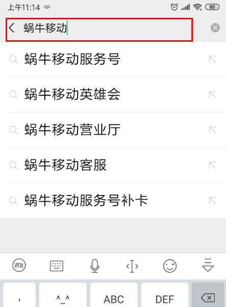 5、点击蜗牛移动服务号下方的【充值缴费】。