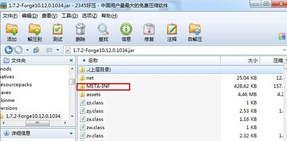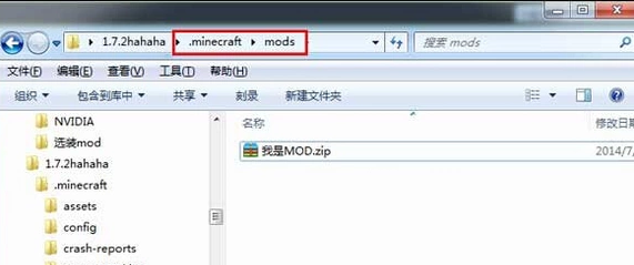 3、打开MOD文件,路径为:minecraft\mods文件夹,找到我的世界游戏核心文件,同样用WINRAR或者7z解压打开。