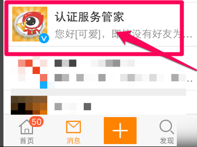 1、首先在微博找到微博认证管家,点击进入,如下图所示。