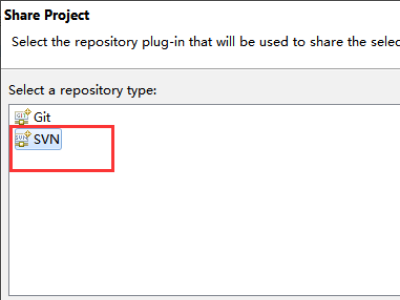 3、然后在打开的Share Project弹出框中,选择 SVN 。