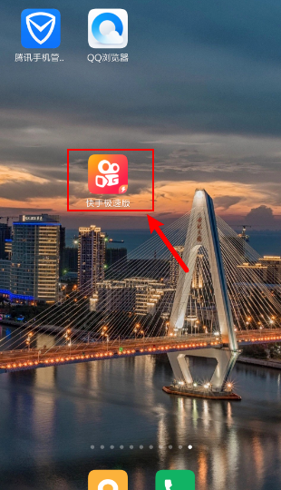 2、打开手机界面,点击“快手极速版”图标。打开快手极速版后,点击“登录”按钮,登录自己的账号,进入观看界面。这时当您发现红包圈圈不见了,不要着急,可进行以下操作。