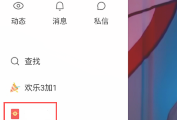 3、点击右上角的三道杠杠形状的标志,进入个人信息界面,找到红包形状的标志,并点击进入界面。