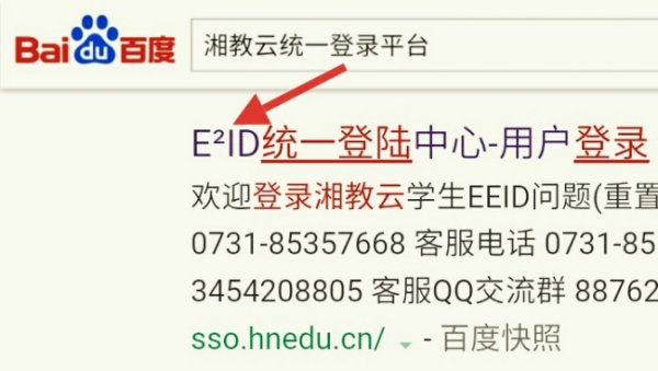1、电脑浏览器百度搜索湘教云统一登录平台,选择图示链接跳转。