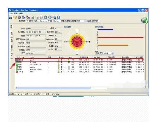 是不是这种现象,可以借助个工具来查看,百度搜索wirelessMON,搜索到后安装运行。