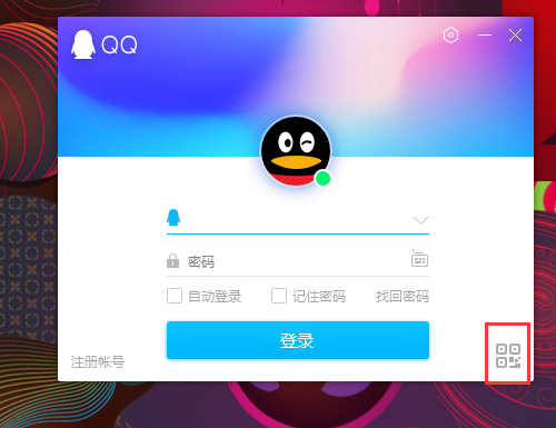 一、首先打开电脑QQ登录窗口,点击右下角的“二维码”登录。