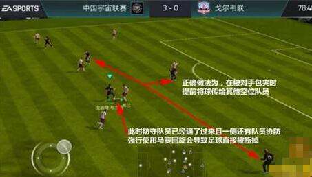 以马赛回旋过人为例,FIFA足球世界带球过人操作步骤如下: