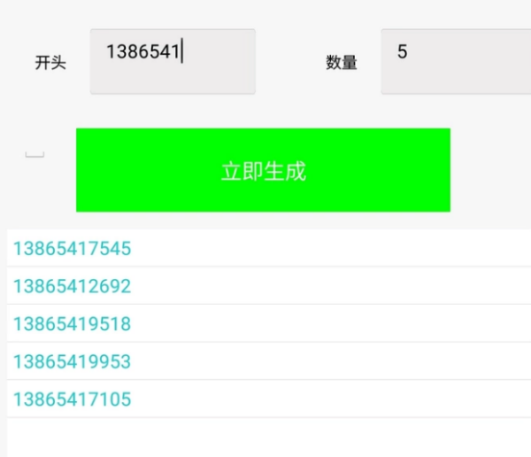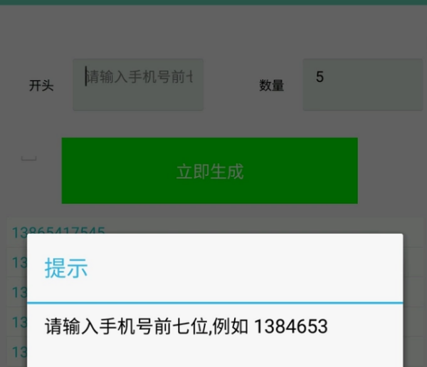 2、打开软件,输入“手机号前7位”,点击“立即生成”