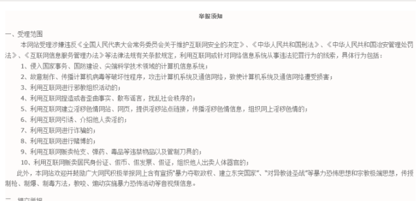 4、在举报前请认真阅读”受理须知“的相应条款。确认你要举报的网站是否存在违法犯罪行为。若的确存在违法犯罪行为才举报。举报应当严肃,不能儿戏。