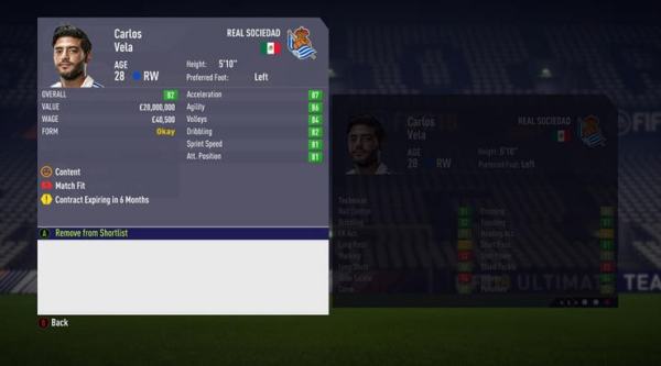玩家们需要知晓的信息:墨西哥明星球员贝拉今年依然是FIFA中非常优秀的一名球员。虽然贝拉82的总体评分并没有提升,但是墨西哥前锋出色的速度、技巧和终结能力还是可以完美地融入进很多顶级球队中。尽管在FIFA18中被默认地归类为右边锋,不过当你将贝拉放置在前锋位置上的时候,你会发现墨西哥人一样高效好用。