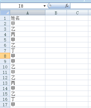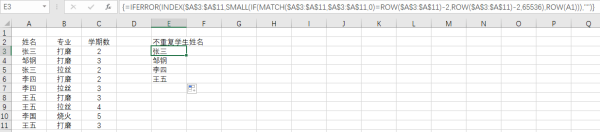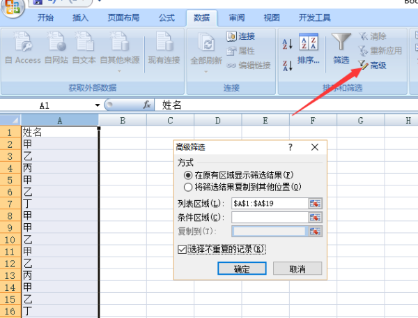 1.A列中有很多重复的姓名,想要得到不同的姓名
