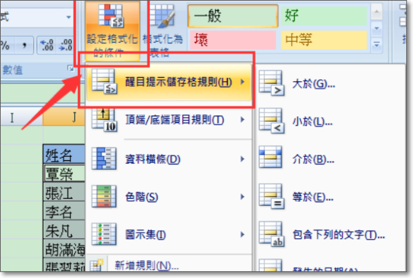office 2010: 设定名字在a列,选取a列,开始/条件格式/突出显示单元格规则/重复值标签:MicrosoftOffice MicrosoftExcel 信息技术 excel 软件