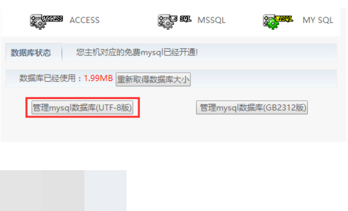4、接着,就能看到数据库管理按钮了,点击进入(UTF—8版):
