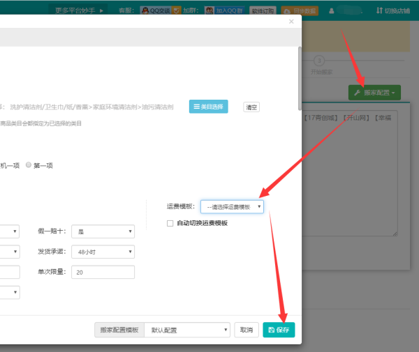 你是不是没有选择模板?点击搬家配置→选择运费模板→保存就行