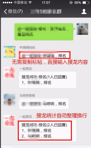 这样就解决了“微信群里报名跟帖”的问题。