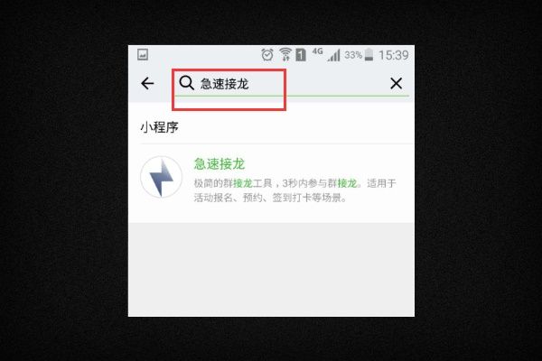 2、在小程序界面上方的搜索框中,输入”急速接龙“开始搜索。