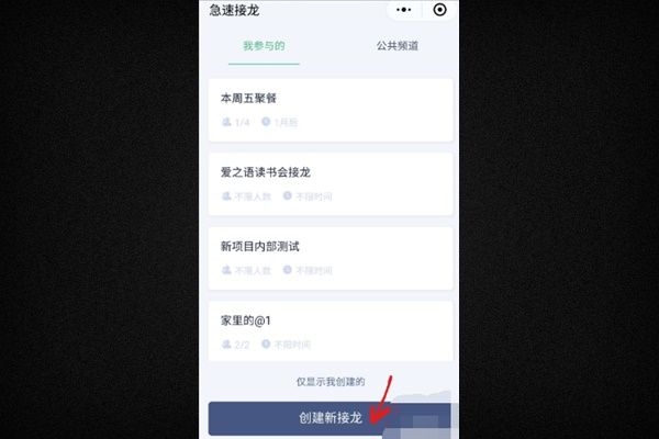 3、进入后点击”创建新接龙“,开始创建一个接龙活动。