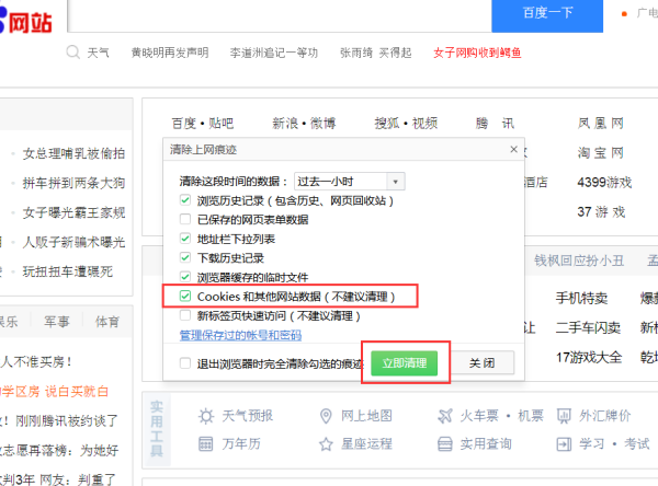 2、接下来,在打开的页面中,点击勾选“Cookies和其他网站数据”选项,点击“立即清理”按钮即可。