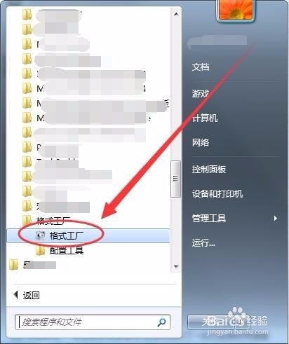 首先,选择开始---->所有程序---->格式工厂,打开格式工厂软件。