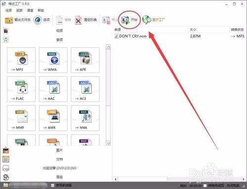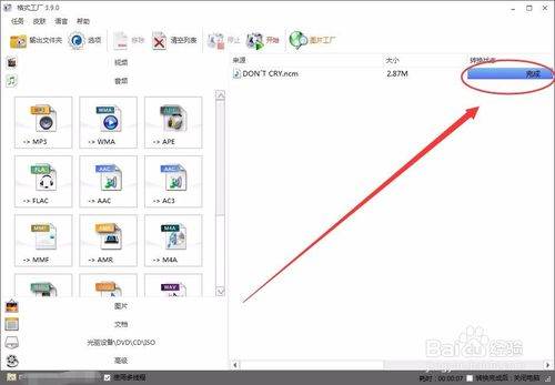 单击开始按钮,音乐格式就开始转换了。
