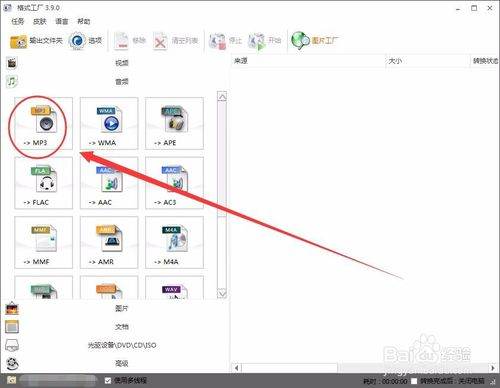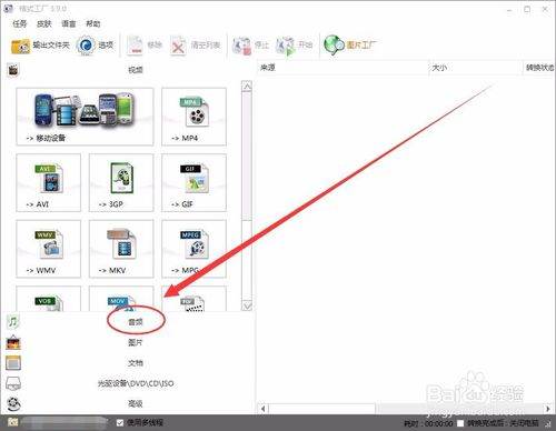 打开格式工厂窗口后,选择音频选项。