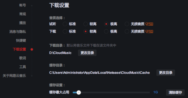 解决方法:在设置-下载设置里找到音乐的下载目录,也可以调整缓存占用,默认是1GB。