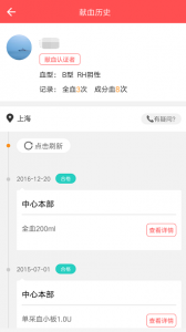 第一种血检查询完后直接点击右上角的献血历史,会出现如下图所示的献血记录。