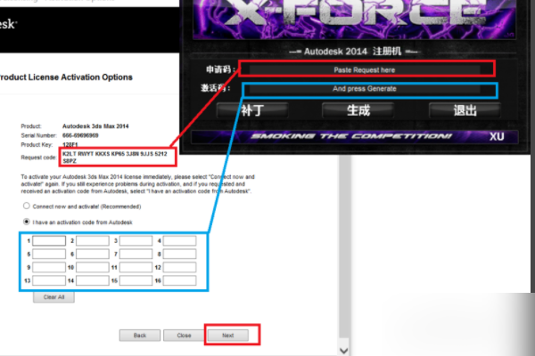 注册机使用方法:启动3DS MAX2012,这里会提示需要激活。把申请码复制下来,打开注册机(切记:如果是Vista或windows7系统,请务必右键单击注册机,以管理员身份运行!),粘贴申请码,点击注册机中的“mem patch”,稍后提示成功,再点“Generate”生成激活码。把注册机中得到的激活码复制后粘贴到3DS MAX2012的激活对话框中,点“下一步”。提示“激活成功''。