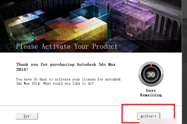 2、此时你会看到现在的软件只能试用30天,现在我们要激活软件,所以我们要选择Activate。