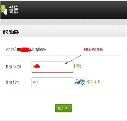 输入获得的验证码后,点击提交解封请求即可。